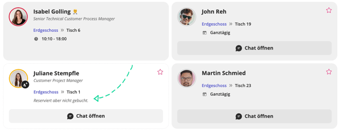 Ein fest zugewiesener Platz wird Kolleg:innen in der Buchungsmaske so angezeigt: