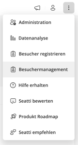 Über die Admin-Menü-Auswahl rechts oben gelangst du direkt zum Besuchermanagement.